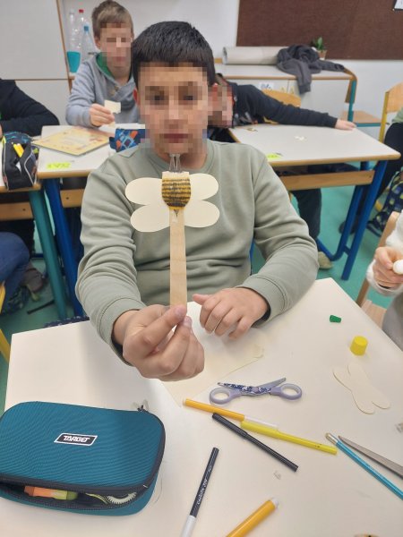 Najprej je učiteljica predstavila teden zdrave hrane, projekt Tradicionalni slovenski zajtrk pod letošnjim geslom: Moja izbira je slovenska hrana. Veliko smo se pogovarjali, katera hrana je zdrava, o pridelavi in kupovanju te hrane, ter pomenu pridelkov lokalnih kmetov. 2. šolsko uro smo se pogovorili o gledališču, sceni in lutkah. Ponovili smo tudi pravila vedenja v gledališču. Začeli smo z ustvarjanjem lutk na palčkah, čebelic, ki smo ga nadaljevali po ogledu lutkovne predstave.