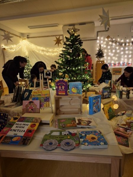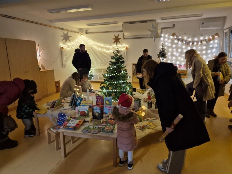V četrtek, 11. 12. 2025, je v našem vrtcu potekalo prijetno zimsko druženje z naslovom »Že diši po praznikih.« Popoldne smo si popestrili z različnimi delavnicami ter zaključili z izmenjevalnico knjig ter sladkim kotičkom. V okviru druženja smo zbirali prostovoljne prispevke za nakup nadstandardne opreme – »Knjigomobila«, zato bi se vam radi na tem mestu iskreno zahvalili za vsak podarjeni prispevek.