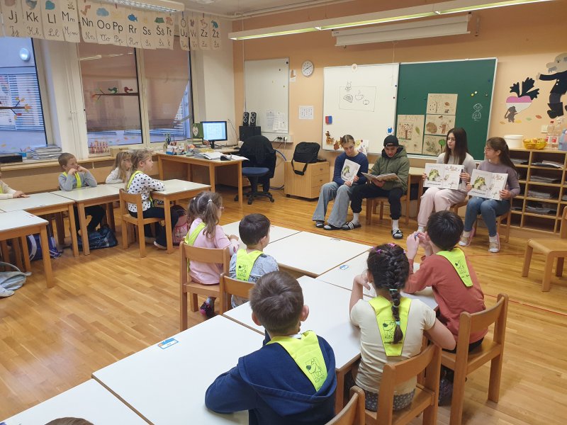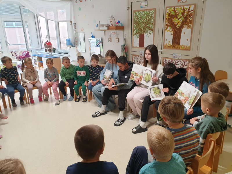 V okviru projekta Medgeneracijsko branje smo se v mesecu novembru 2025 učenci NIS programa 7. in 8. razreda OŠPP Mirna družili z otroki skupine GUMBI vrtca Deteljica Mirna in učenci 1. a ter 1. b razreda OŠ Mirna. Prebrali smo jim slikanico POGOLTNI ZMAJ, ki jo je napisal Jure Preglau, ilustrirala pa Katerina Kalc.