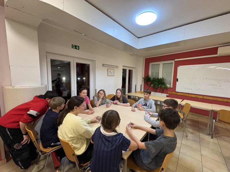 Še vedno nas spremlja slabo vreme, a mi se ne damo. Deževen dan je kot nalašč za druženje ob različnih igrah. Dopoldne smo s kompasom raziskovali okolico našega začasnega doma, opazovali valovanje morja ter merili temperaturo in pH morske vode. Popoldne nas čaka še priprava školjk na buzaru. Se vam kaj cedijo sline?