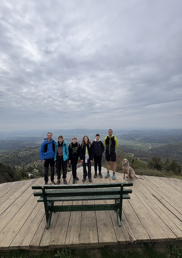 Na vrhu smo si privoščili kratek postanek za malico ter uživali v razgledih na okoliško pokrajino. Po krajšem počitku smo pot nadaljevali proti Deželi kozolcev, kjer smo naš pohod tudi zaključili.